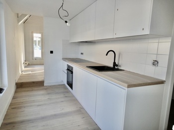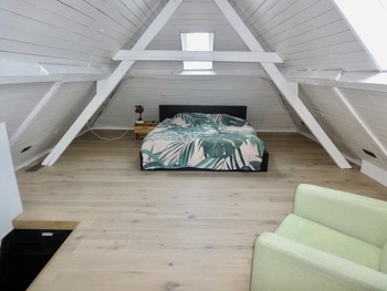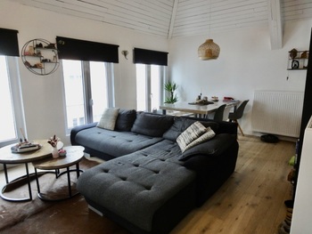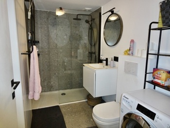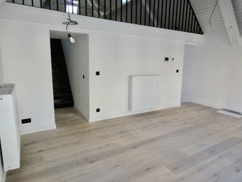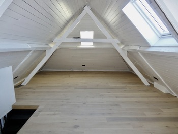 Living/leefruimte op plankenvloer met toffe bovengelegen mezzanine grote ruimte. Keuken voorzien van kookplaat, afzuigkap, oven en vaatwasser. 2 slaapkamer op planken vloer. Badkamer met douche, meubel met lavabo + spiegel met verlichting en toilet + handdoekwarmer.