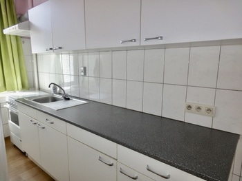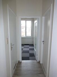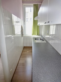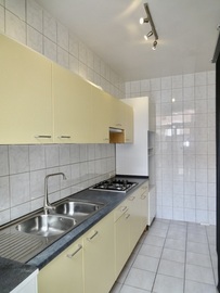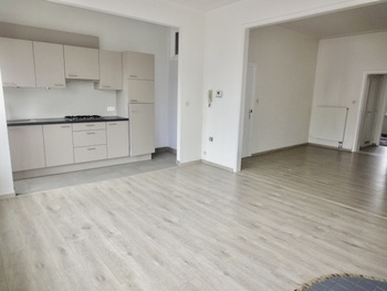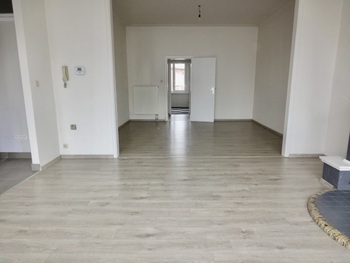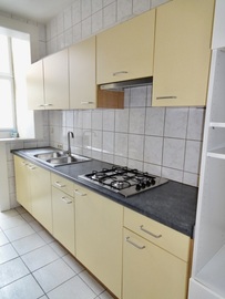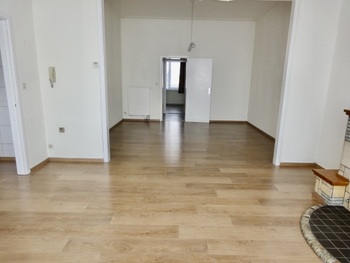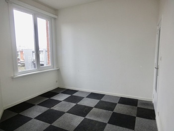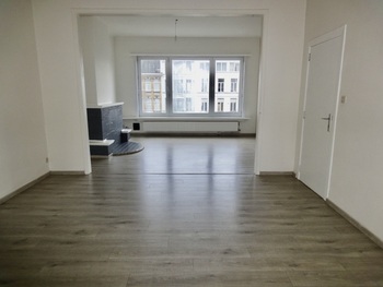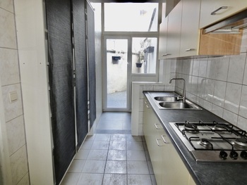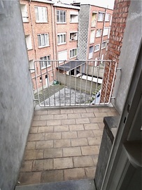 2de verdiep: KI 597 OV 543: living op laminaatvloer, open keuken voorzien van gaskookplaat, afzuigkap en geïntegreerde koelkast met vriesvakje 2 slaapkamers, 11 en 6m2, begelde badkamer met douche, spiegelkast en toilet. Terras 2,5m2.