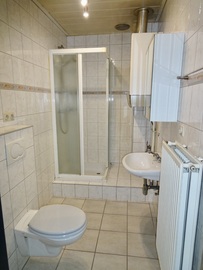 1ste verdiep: KI 629 OV 572: living op laminaatvloer, keuken voorzien van gaskookvuur met oven en afzuigkap, 2 slaapkamers, 11 en 6m2, begelde badkamer met douche, spiegelkast en toilet. Terras 2,5m2.