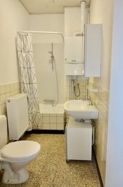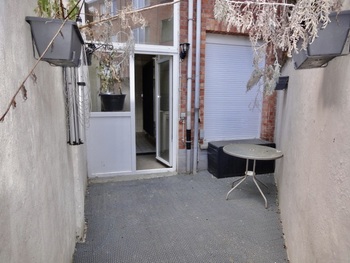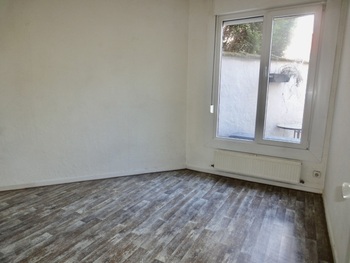 GV: KI 614 OV 558: living op laminaatvloer, keuken voorzien van gaskookplaat en afzuigkap en plaats voor was- en droogmachine, 1 slaapkamer, 11m2, begelde badkamer met douche, spiegelkast en toilet. Terras/koer 9,5m2.