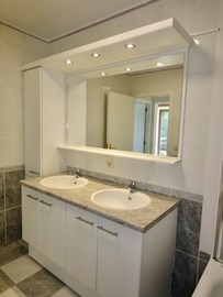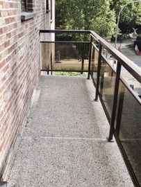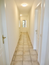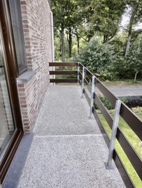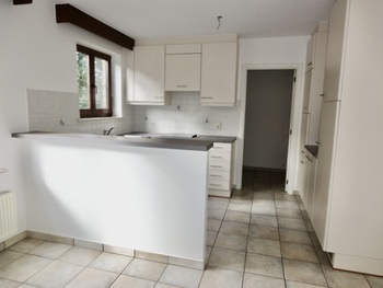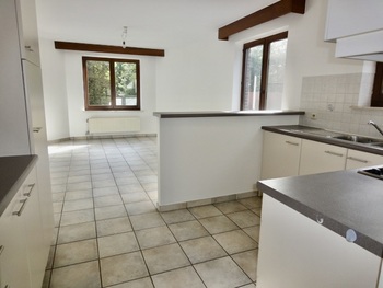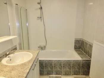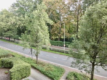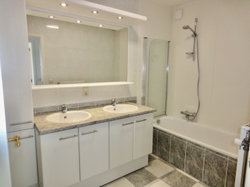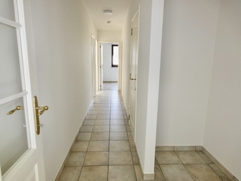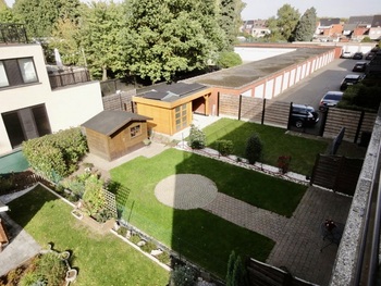 Inkomhal op tegels. Ruime living met veel lichtinval met terras, 4m2 dat prachtig groen zicht geeft op het tegenover gelegen park. Open keuken met keramische kookplaat, afzuigkap en geïntegreerde koelkast, aansluitend aan keuken is een grote handige berging met individuele cv ketel en was-en droogmachine aansluiting. 3 slaapkamers waarvan 2 toegang geven tot terrassen van elk 5,5 m2. Betegelde badkamer met badkamermeubel met dubbele lavabo, zeer veel opbergruimte, spiegel en ligbad met douchescherm. Aparte toilet met handenwasser. Achteraan het gebouw ligt de bijhorende garagebox met voldoende plaats om extra kasten of fietsten te plaatsen.