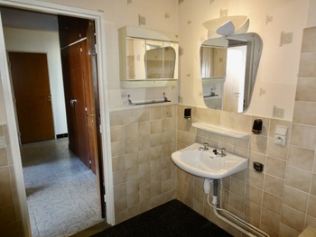 Via de lift van dit verzorgd gebouw bereik je het appartement op de bovenste verdieping (twee appartementen per verdiep). De inkomhal (10m²) op frutvloer geeft toegang tot alle kamers van het appartement en is voorzien van handige 4 deurs vestiairekasten met bovenaan bergruimte. De living (30m²) op vinylvloer met sierschouw heeft grote ramen met veel lichtinval.